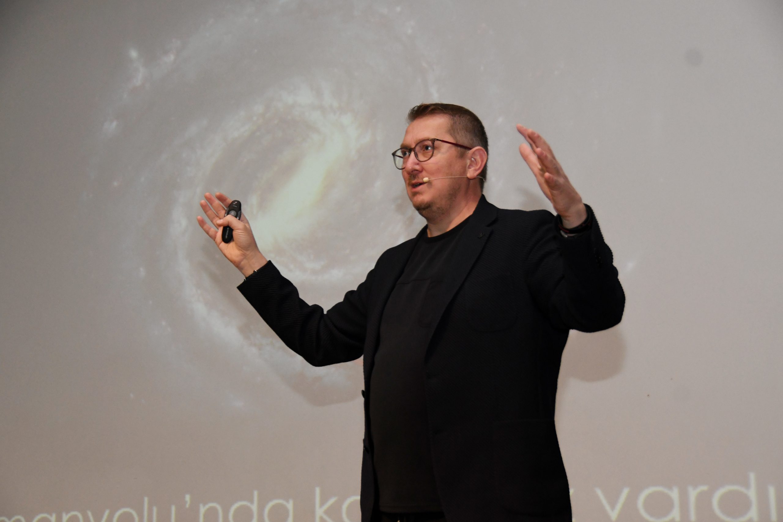 Konferansı veren Dr. Umut Yıldız; gezegenlerin yapısı, uzayla ilgili bilgiler, gezegenler ve galaksi çevresinde meydana gelen olaylarla ilgili bilgiler paylaşırken NASA’nın kullandığı teleskoplardan, derin uzaydan ve uzay araştırmalarından bahsetti.
