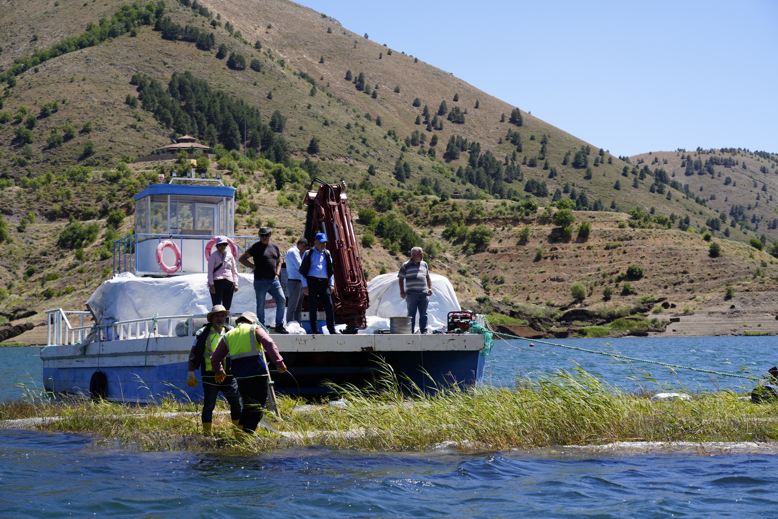 Çalışmaların olumlu yönde gittiğini belirten Keleş, “80 metrekarelik karaya oturmuş yüzen adamızı gölün merkezine sabitlemeyi başardık. Karaya oturmuş irili ufaklı toplam 100 dönümlük adaları kurtararak kentin turizmine katkıda bulunmayı hedefliyoruz.” dedi.